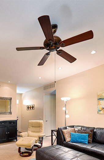 Remove and replace noisy, wobbly or outdated ceiling fans with energy-efficient models featuring improved performance and modern styling.