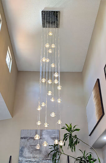 We install all lighting types including downlights, pendant lights, ceiling fixtures, wall lights, and LED strip lighting for homes and businesses.
